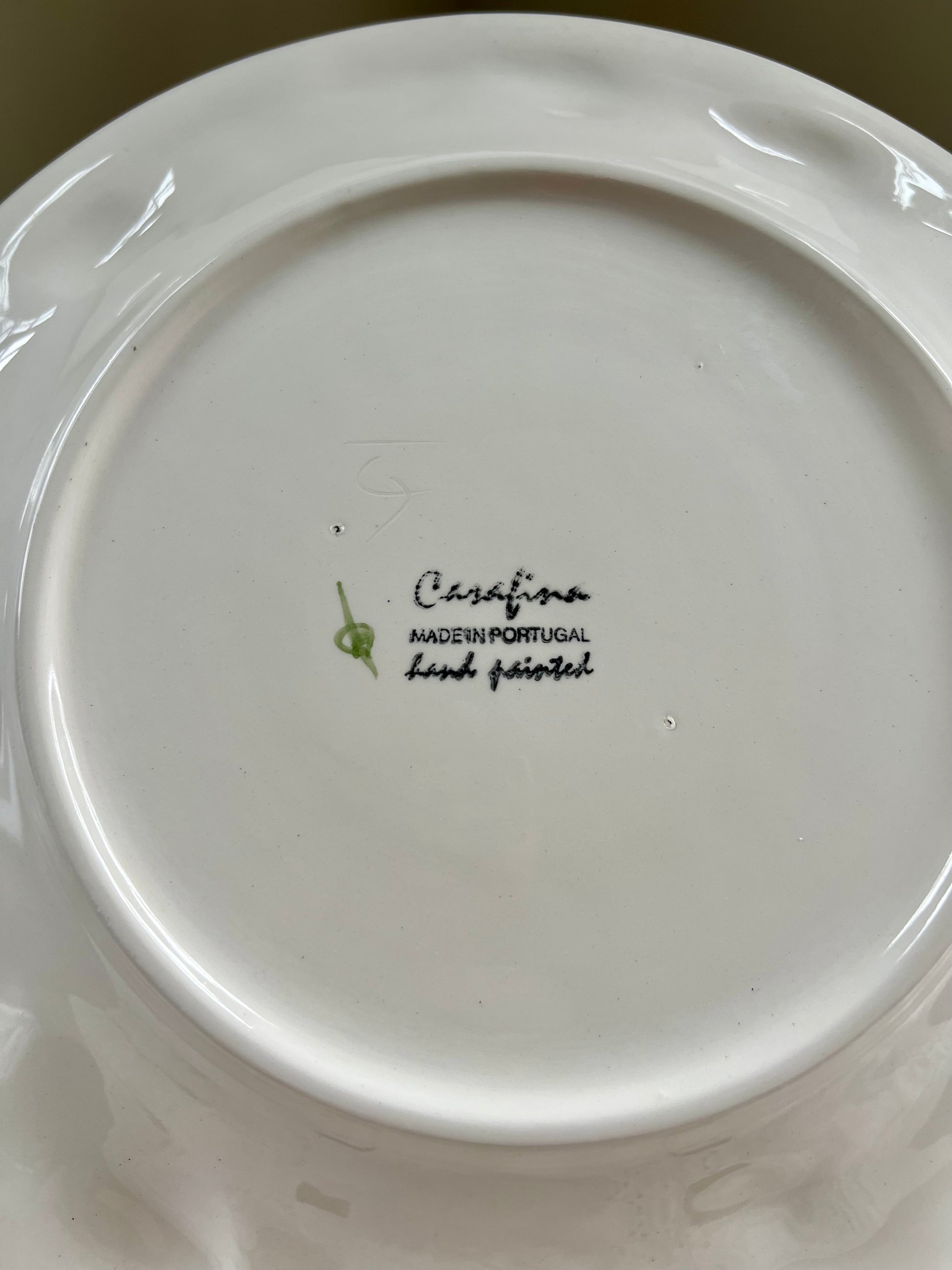 Beautiful Set (8) Casafina Fruit Relief Green Hand Painted Dinner Plates, 10.5”, Portugal