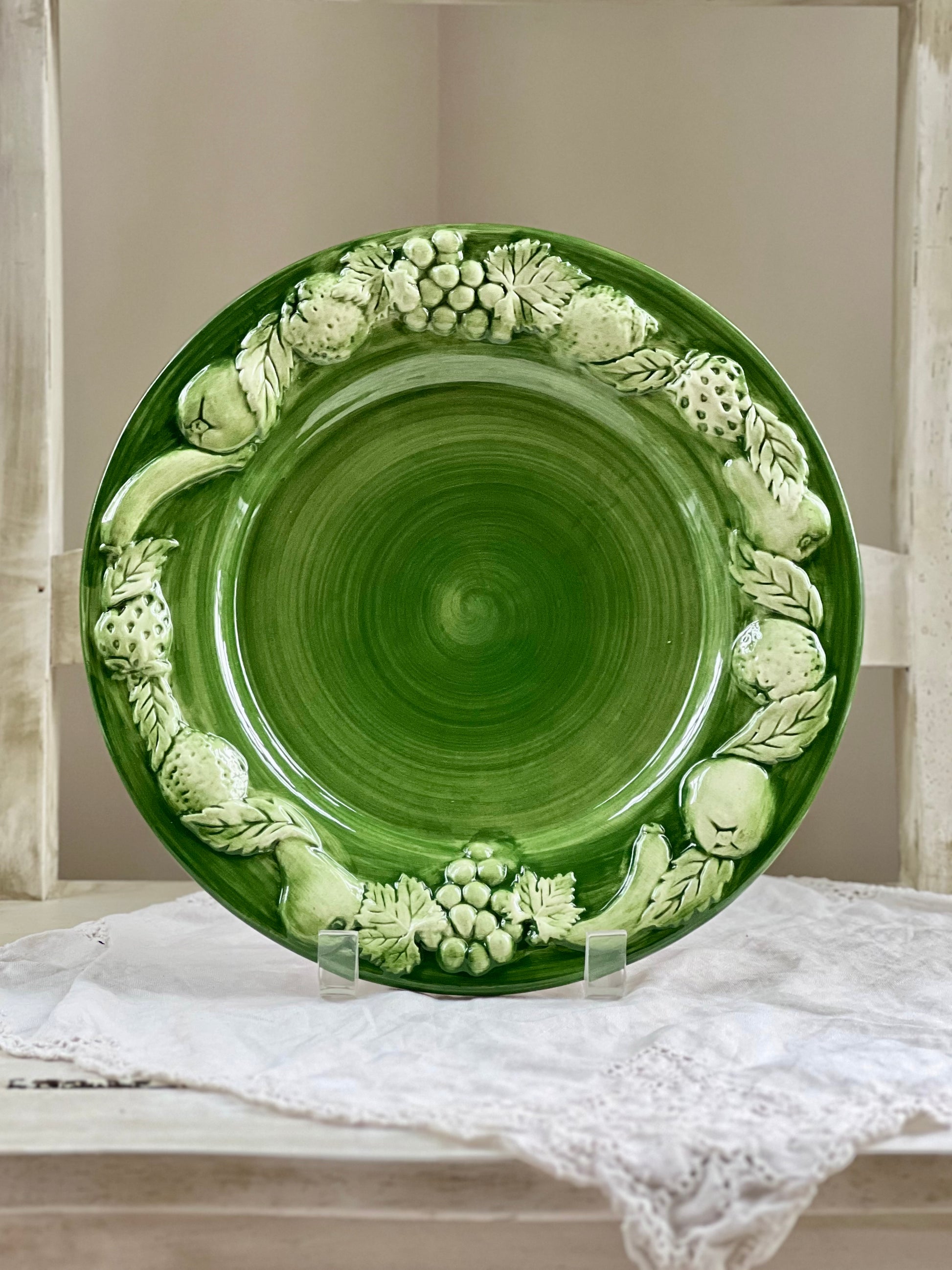 This is a gorgeous set of eight (8) hand painted dinner plates by Casafina of Portugal. The verdant green fruit relief pattern is so lovely for spring & summer. These plates display beautifully when not in use!