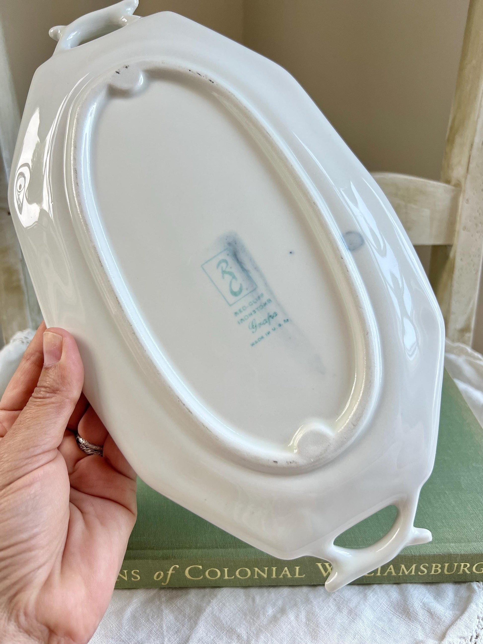 Beautiful Vintage Three Piece Ironstone Creamer & Sugar Set with Tray by Red-Cliff, Grape Pattern