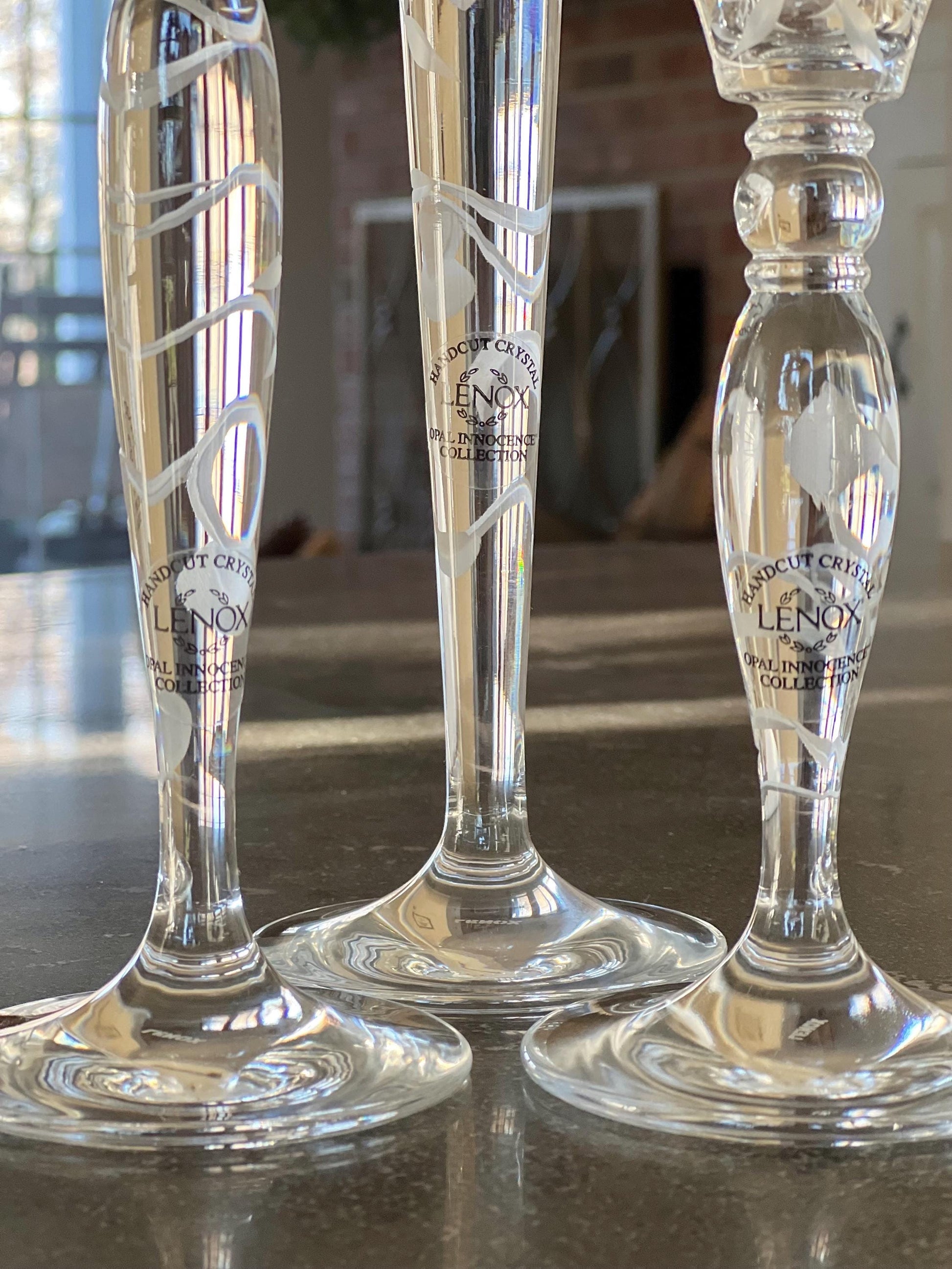 Set of 3, Lenox Opal Innocence Handcut Crystal Candlesticks