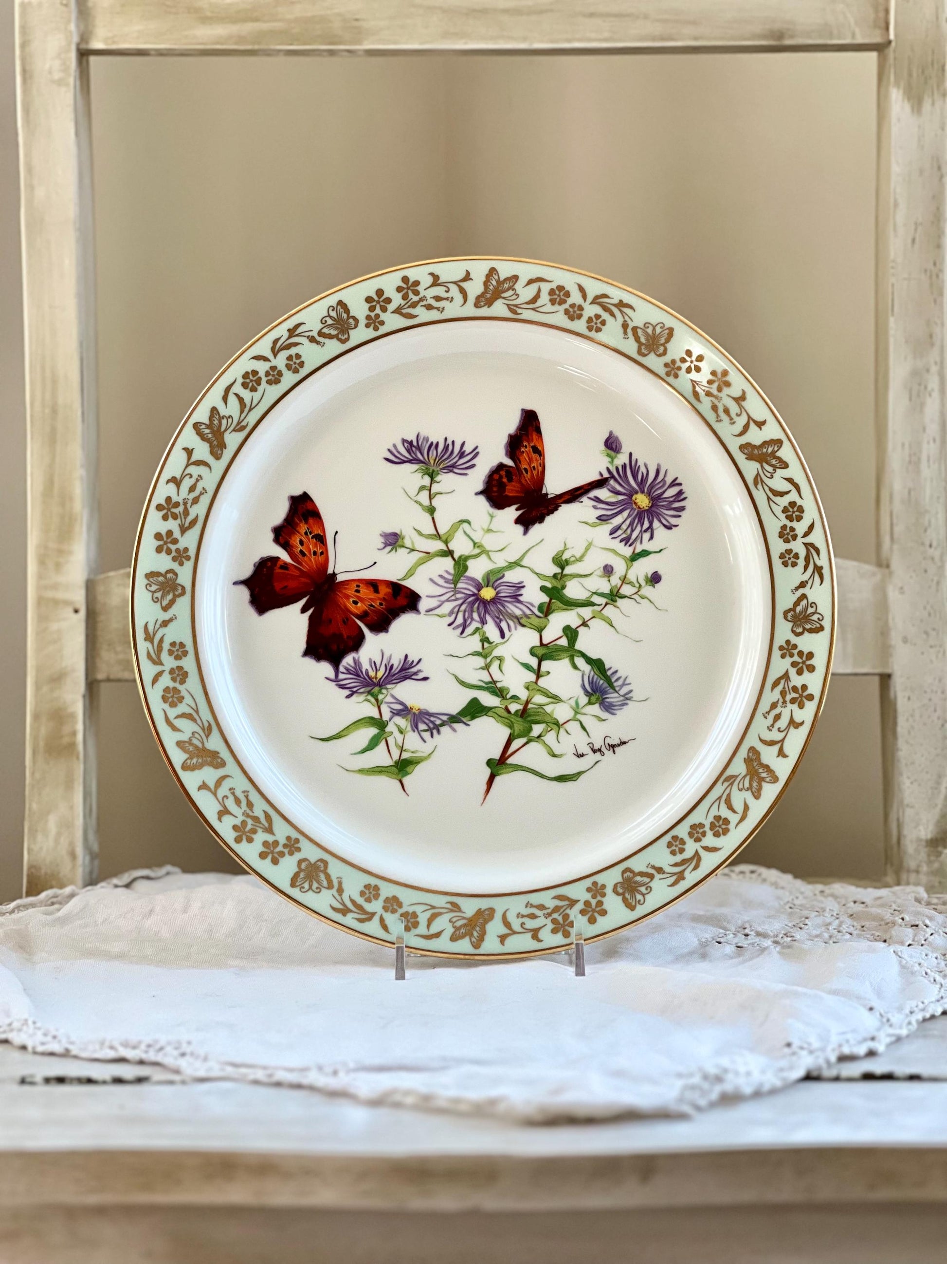 Vintage Lenox Butterflies & Flowers, Question Mark Butterfly and New England Aster Plate, First in a Series, Lenox USA