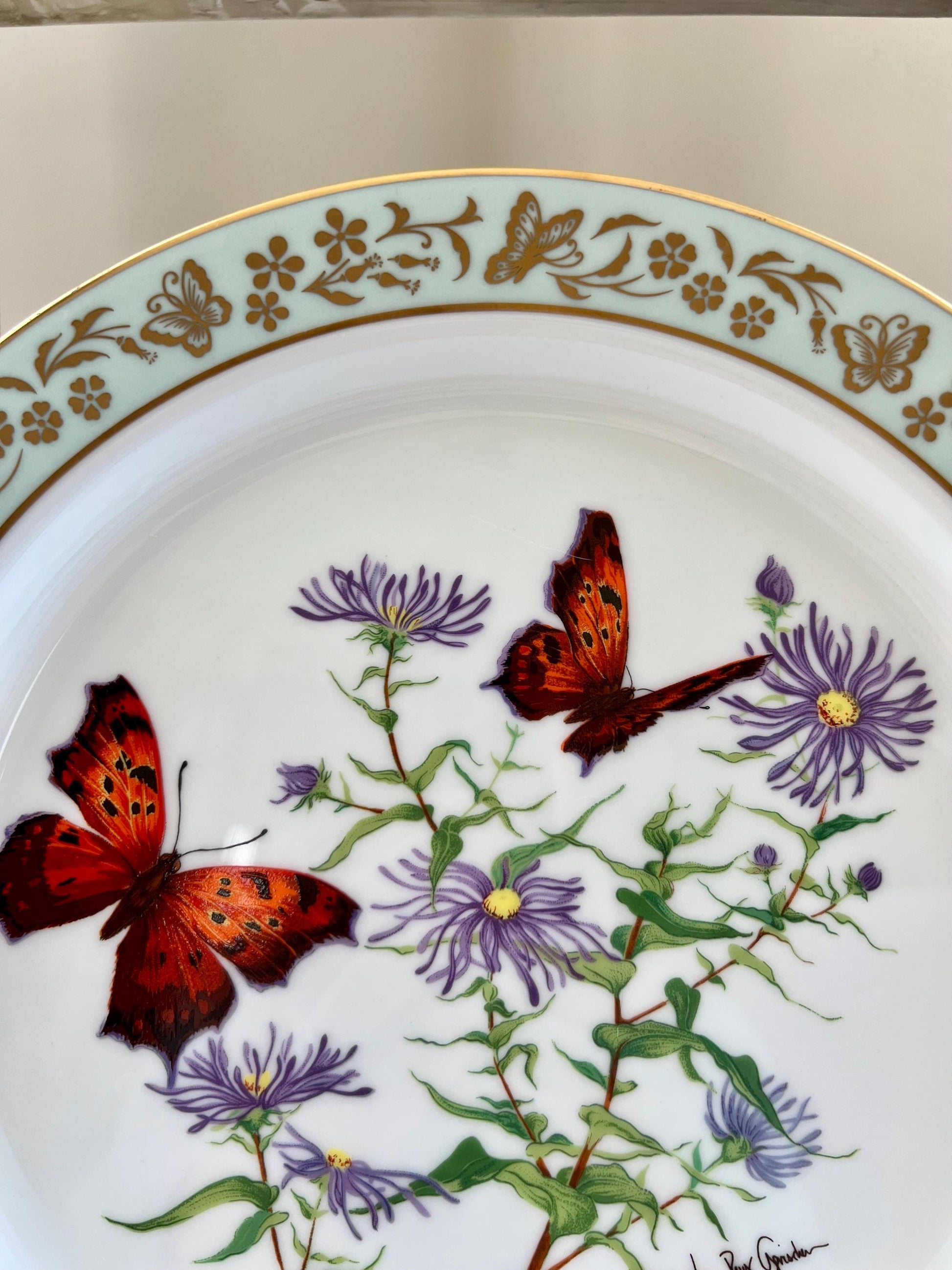 This is a beautiful vintage "Butterflies & Flowers" collectible Lenox plate featuring the pattern "Question Mark Butterfly and Aster". The artist is Val Roy Gerisher. This was the first plate in a limited series of 8.