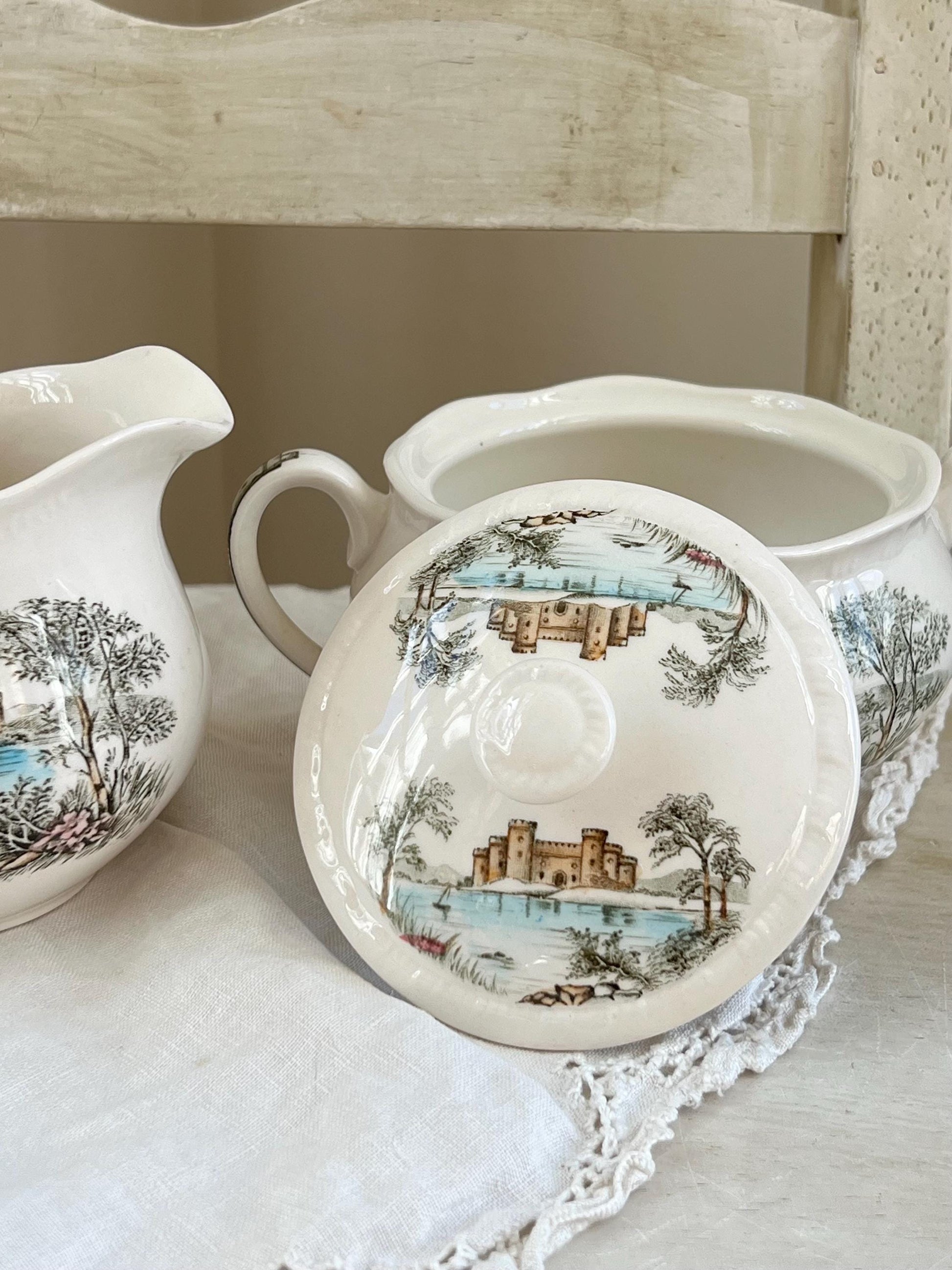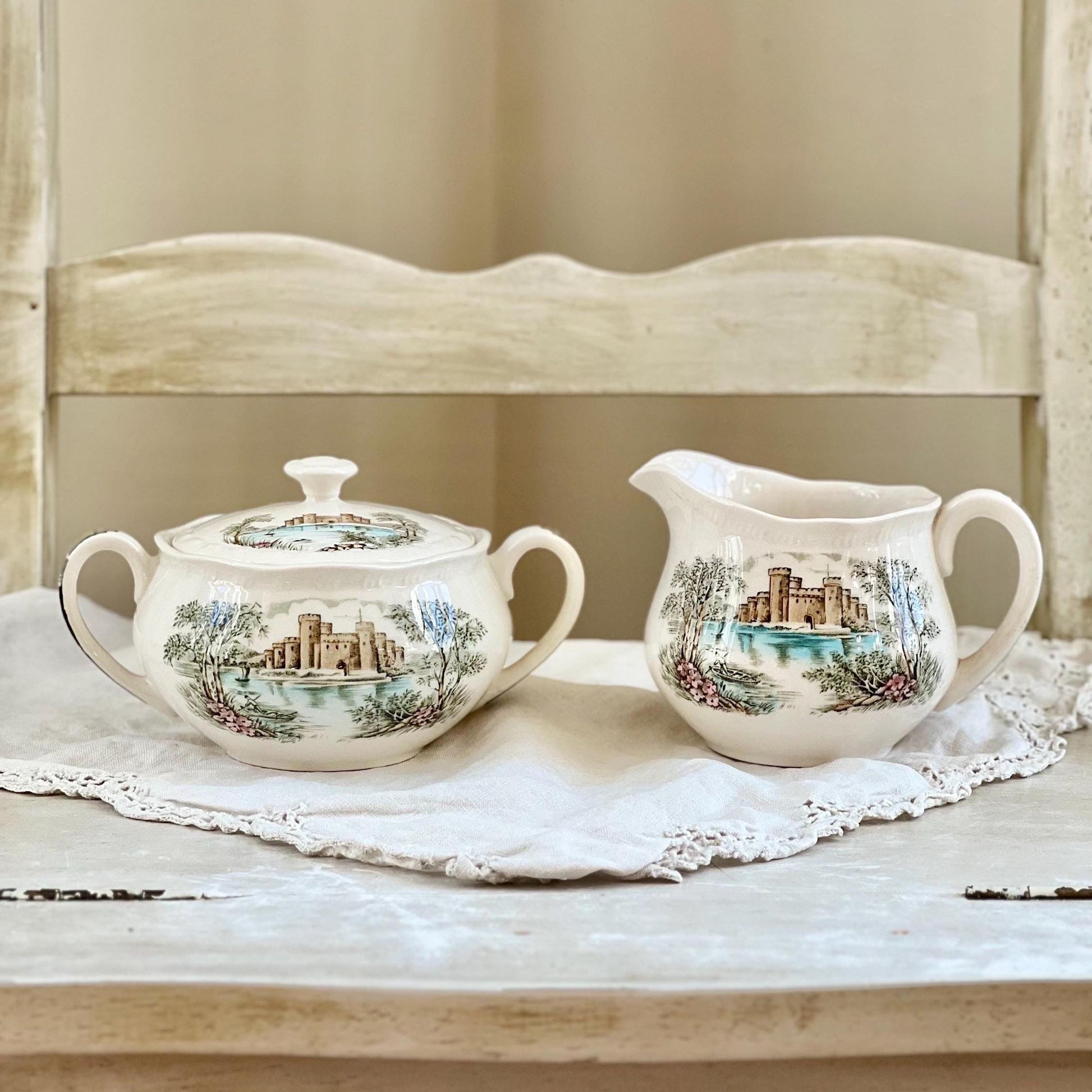Vintage Queen's Castle Creamer & Sugar by Alfred Meakin, England